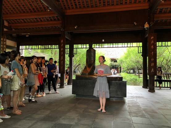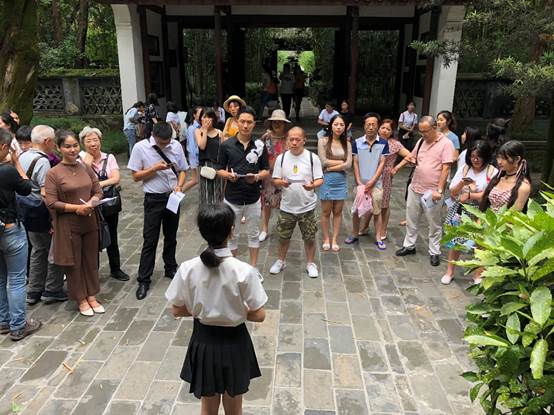 本次导游大赛的形式较以往做了重大变革,比赛场地选择成都杜甫草堂博物馆,在景区内的大廨、诗史堂、工部祠和茅屋等主要景点进行实地讲解。选手们仪表端庄,镇定自若,思维清晰,精彩的讲解引得无数游客驻足聆听,赢得阵阵掌声。