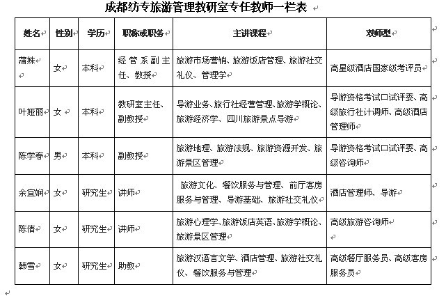 职称结构:副教授4名,讲师7名,助教1名。学历结构:硕士8名,本科,3名。专职教师具有丰富的理论教学经验和实践教学经验。具备较强的实践教学经验与理论联系实际的能力。