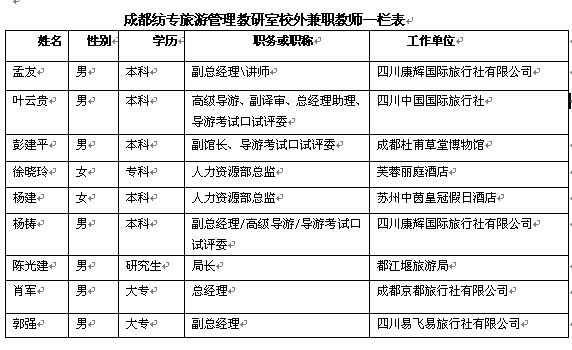 本专业长期外聘成都招商局物流中心、成都人人乐商业有限公司等多家公司的部门经理、业务骨干作为外贸类专业实践指导老师。